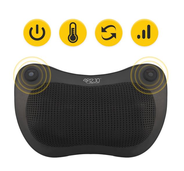 Ierīce izmanto divas rotējošas masāžas galviņas, kas imitē profesionāla masiera roku kustības. Tā ir aprīkota ar sildīšanas funkciju, kas palīdz vēl efektīvāk atslābināt saspringtos muskuļus un uzlabot asinsriti. Spilvens ir viegls, kompakts un viegli lietojams.