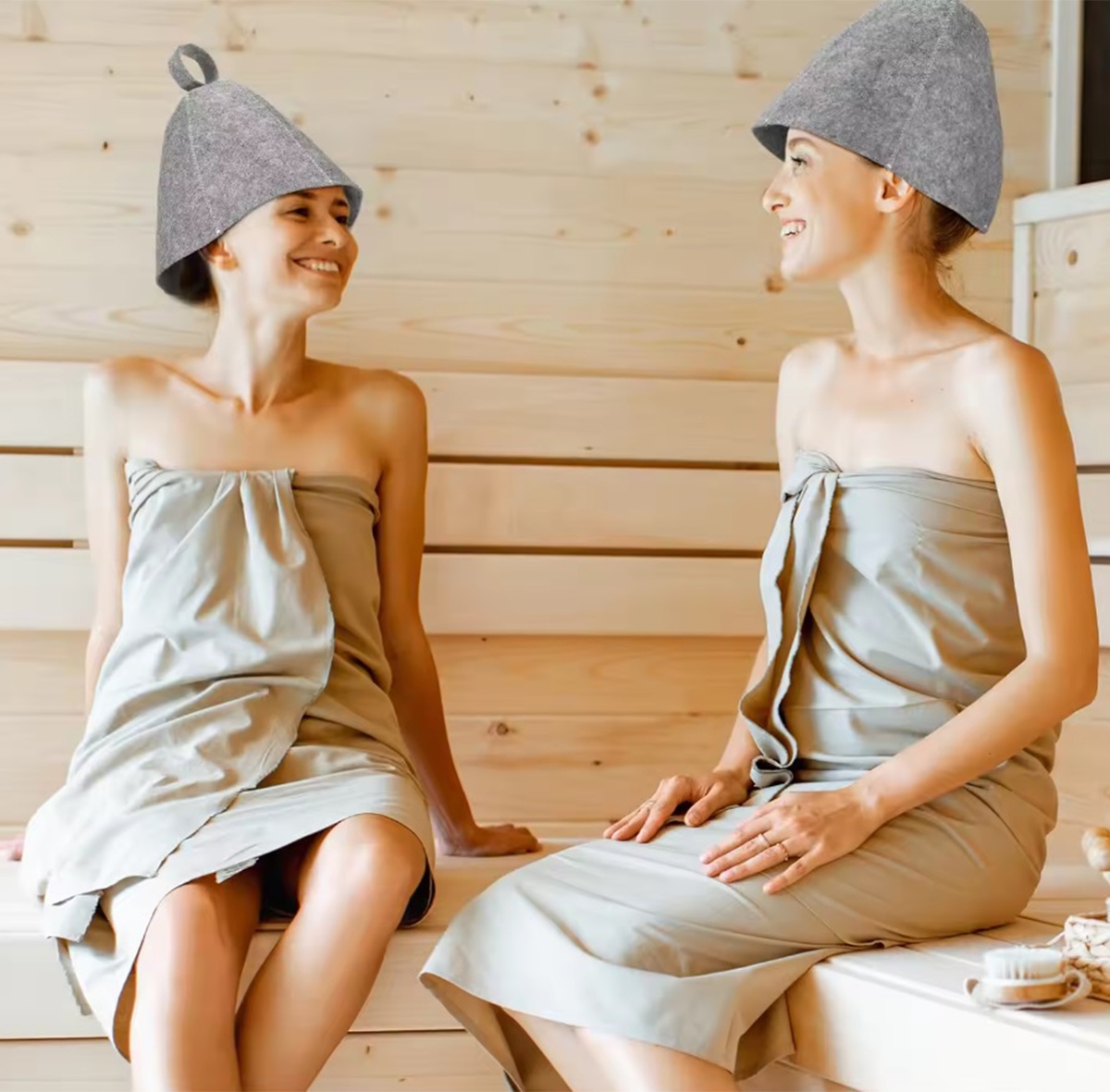 Filca pirts un saunas cepure matu aizsardzībai, pelēka