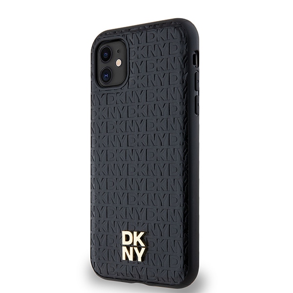 DKNY iPhone 11 / XR vāciņš Leather Monogram Pattern Metal Logo MagSafe, melns