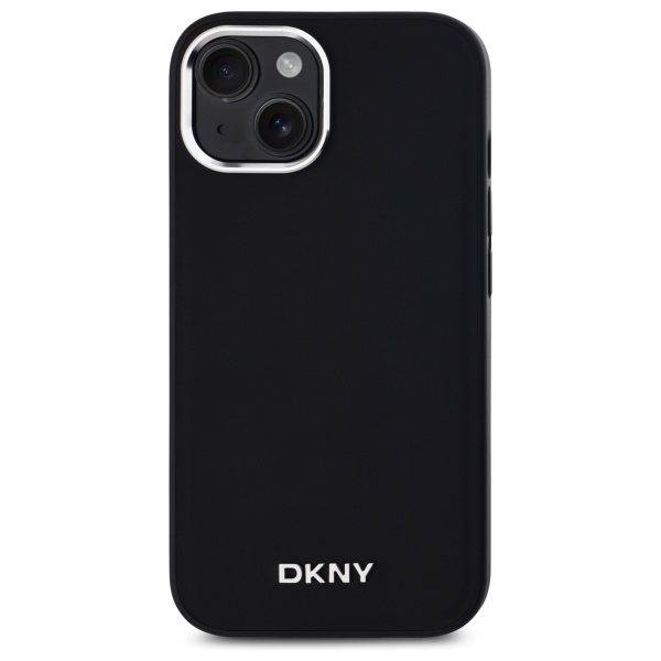 DKNY iPhone 14 vāciņš Plain Logo MagSafe, melns