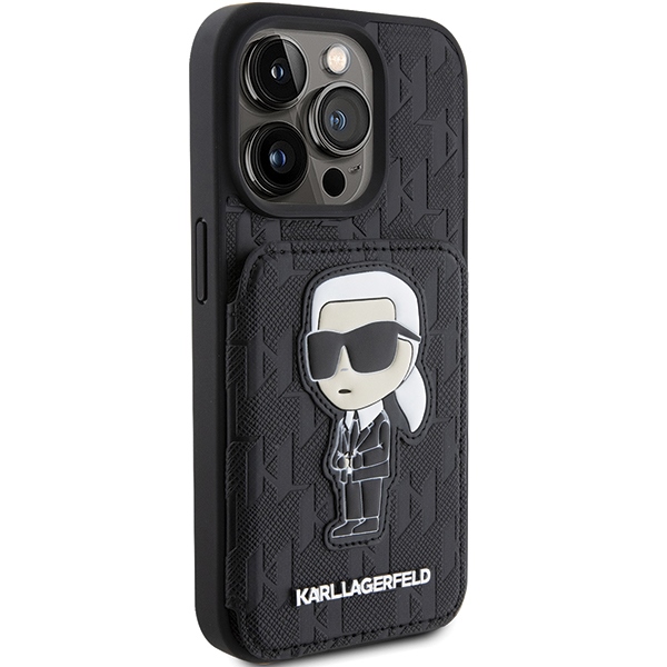 Karl Lagerfeld iPhone 15 Pro vāciņš Saffiano Monogram Ikonik Patch, melns