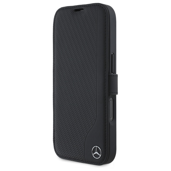 Mercedes iPhone 16 Pro Max vāciņš Leather Wood Imitation, melns