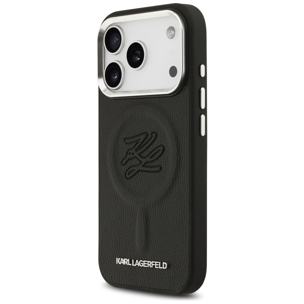 Piešķir savam iPhone 17 Pro Max ikonisku stilu ar melno Karl Lagerfeld Initial & Metal Logo MagSafe vāciņu.