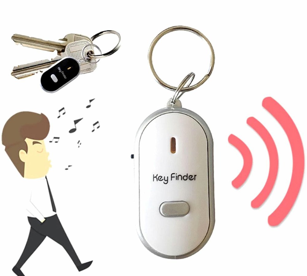 Kompakts atslēgu piekariņš ar gaismas diodi un atrašanās vietas noteikšanas funkciju. Ierīce reaģē uz svilpienu dažu metru attālumā. Izdzirdot skaņu, sāk raidīt trauksmes signālu un mirgo sarkana diode. Pateicoties šim nelielajam piekariņam, jūs vienmēr zināsiet, kur esat novietojis savas atslēgas.