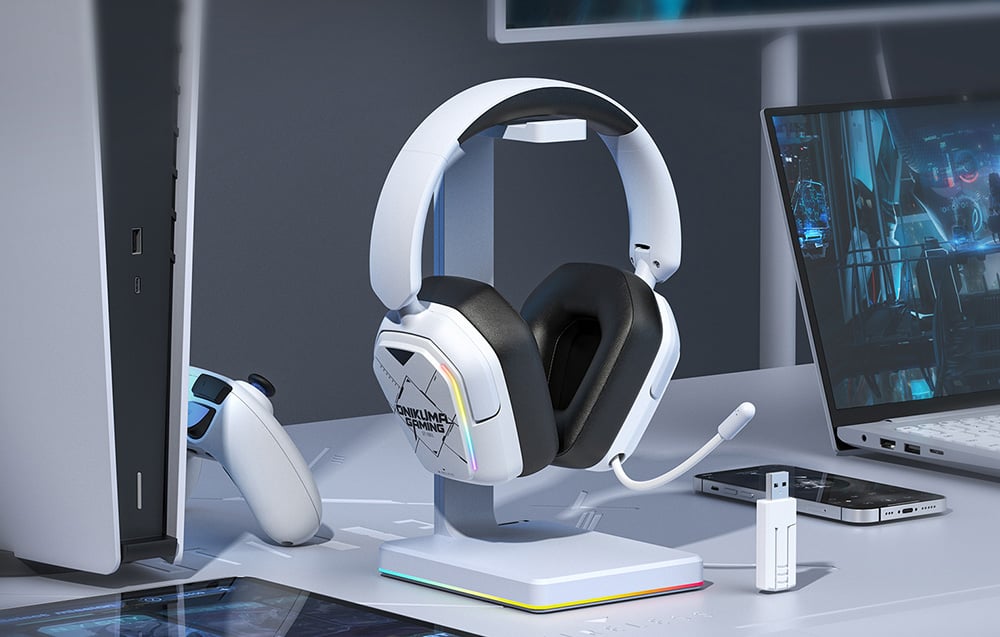 Izbaudiet maksimālu brīvību ar ONIKUMA GT883 daudzrežīmu bezvadu spēļu austiņām. Šīs baltās austiņas ir radītas spēlētājiem, kuri novērtē komfortu un stilu, nodrošinot dinamisku skaņu un skaidru saziņu. Ar četriem savienojuma veidiem un ietilpīgu akumulatoru tās lieliski pielāgojas jebkurai spēļu videi.