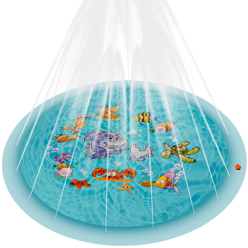 Kruzzel 165 cm ūdens paklājs - strūklaka ir lielisks risinājums bērnu izklaidei un atvēsināšanai karstās vasaras dienās. Šis krāsainais paklājs ar jūras motīviem ir viegli uzstādāms dārzā vai pagalmā, nodrošinot jautras ūdens spēles.