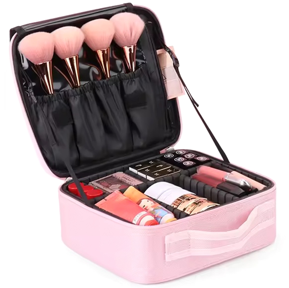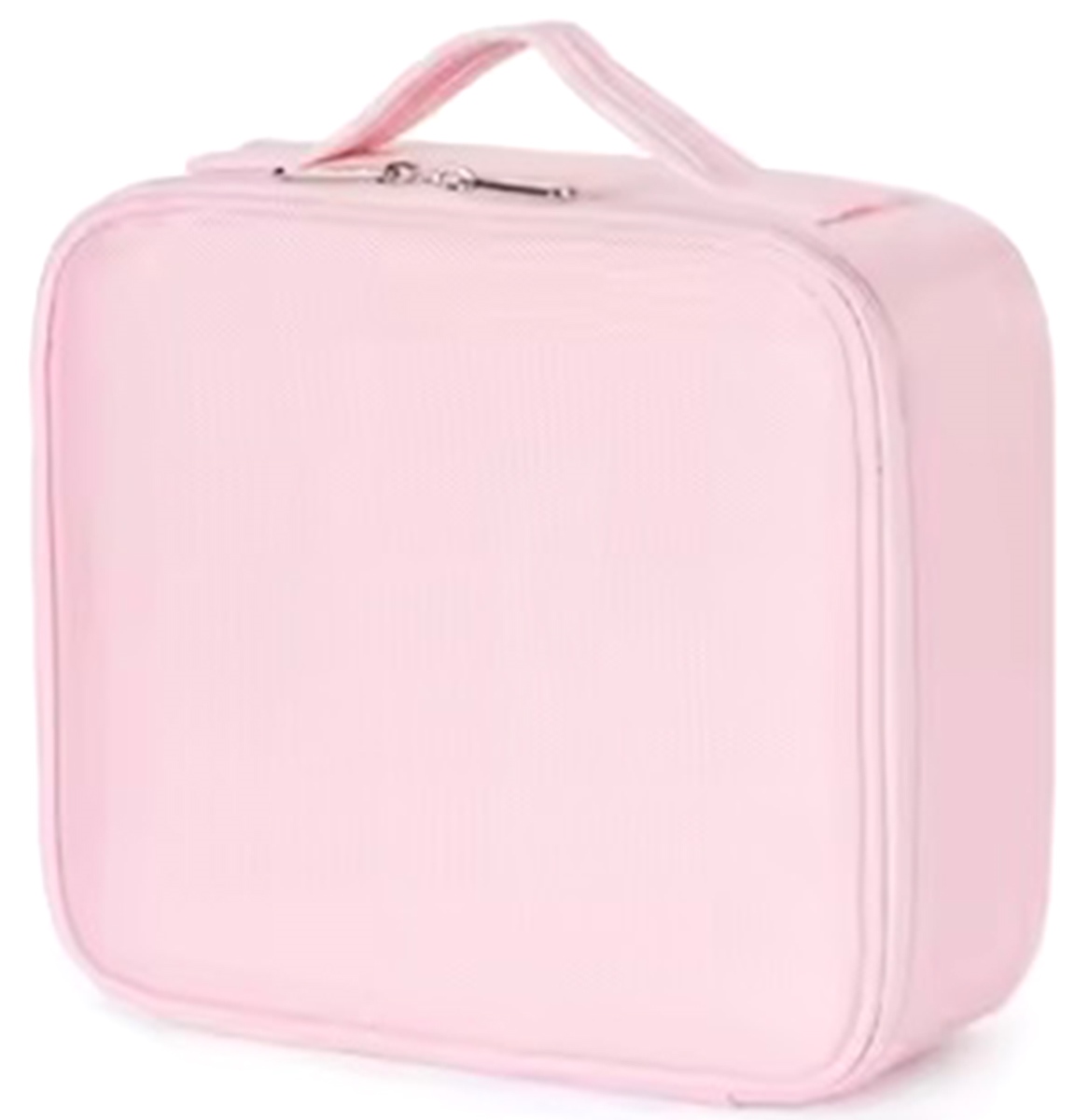 Ceļojumu kosmētikas kaste ar regulējamām nodalījumiem, rozā