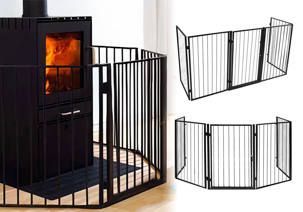 The gate is easily attached to the wall using the fasteners included in the kit. They are designed in such a way that the child will not be able to open them on their own. It can be used not only as protection for a fireplace, but also for stairs and other places dangerous for a child, as well as a corral for animals.