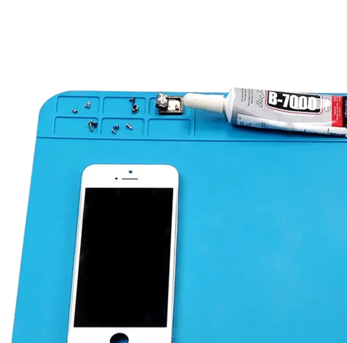 Multifunctional, anti-static silicone service mat. An essential for every amateur and professional do-it-yourselfer. Greatly facilitates the performance of all electronics repairs soldering. Resistant to high temperature (up 500 degrees Celsius) deformation. Equipped with numerous compartments at top mat.