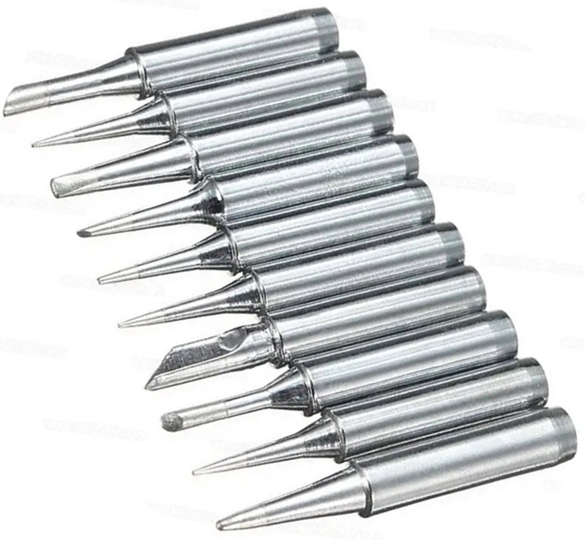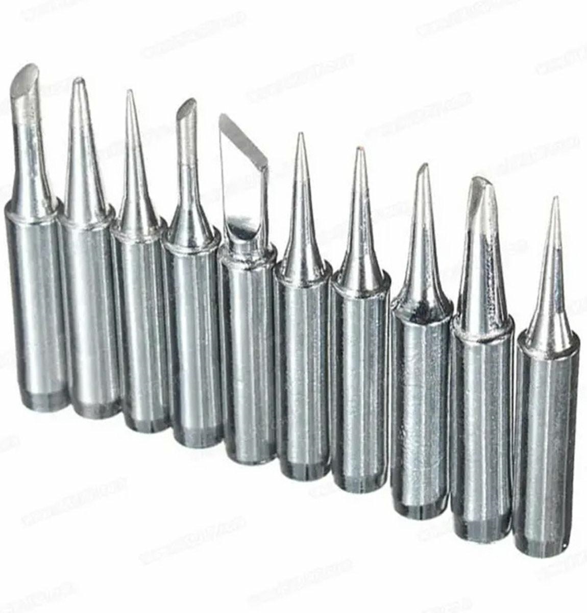 Set of 10 soldering tips for heater irons. Different types and dimensions definitely make it easier to solder components. Universal guarantee compatibility with most models available on the market.