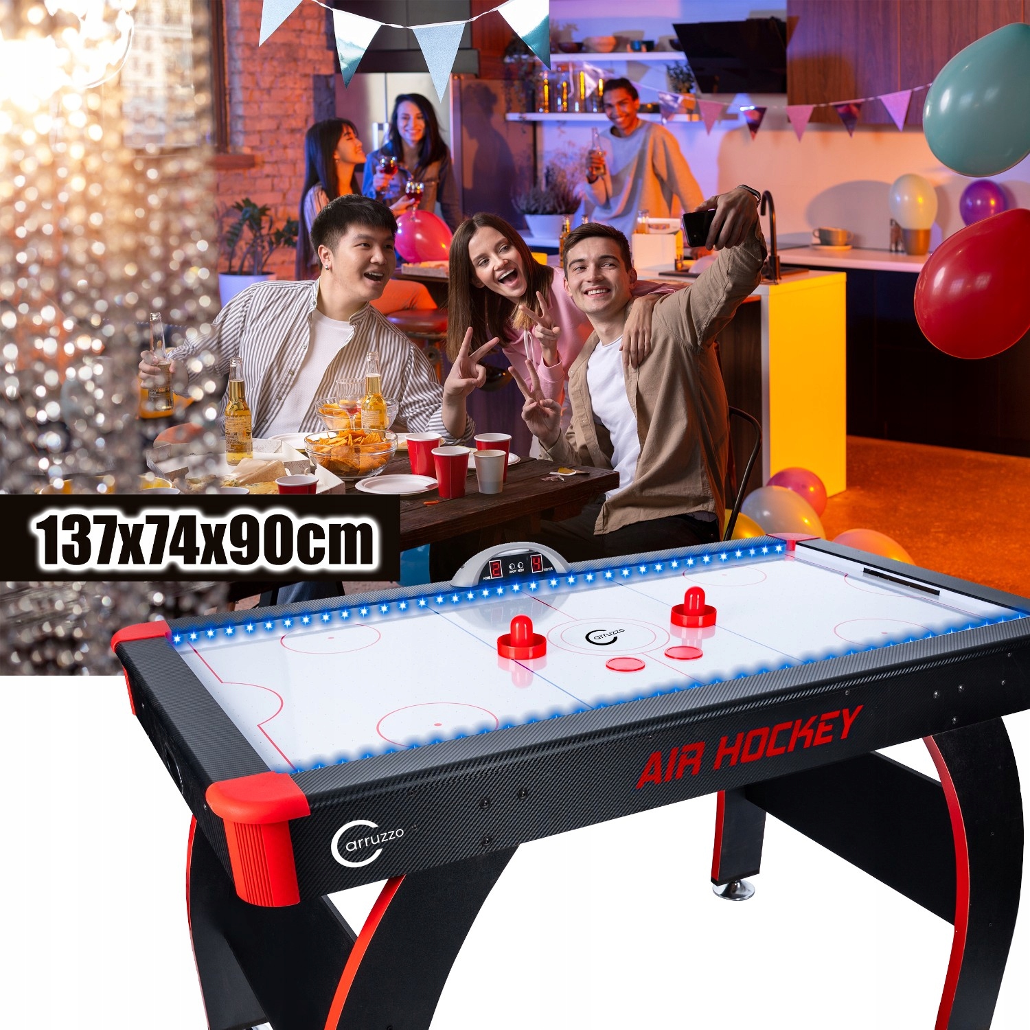 Board Game Mega Air Hockey Table with Backlight, 137x74x90cm