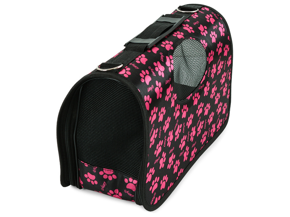 Large pet carrier bag for dogs and cats black with paw prints