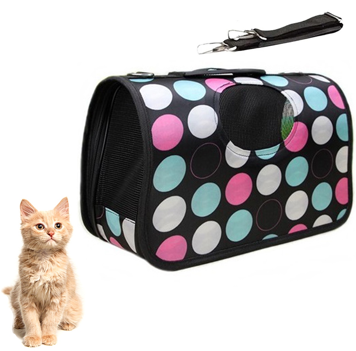 High quality transport bag for small pets. It will be perfect moving our cat or rabbit to any distance. Extremely convenient design provide comfort both us and the animal. The strong material of which carrier was made, as well sturdy handle adjustable shoulder strap, ensure long trouble-free use product. is airy safe pet thanks a special ventilation system. Convenience also ensured by double zipper on sides carrier.