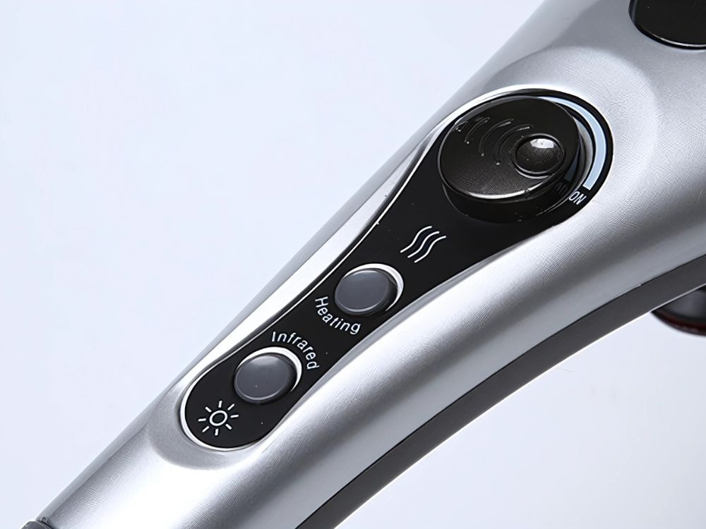 The double vibration massager with heating function and infrared light is designed for body care, relieving muscle tension, and improving blood circulation.