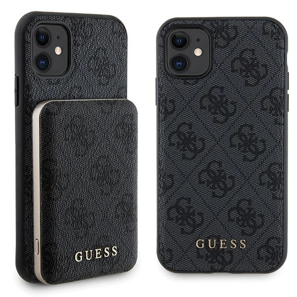 Apple iPhone 11 6.1'' Guess 4G Metal Logo + 5000mAh MagSafe Power Bank Case Cover, Black