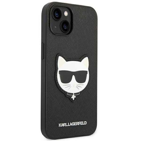 Karl Lagerfeld iPhone 14 Plus Case Saffiano Choupette Head Patch Black