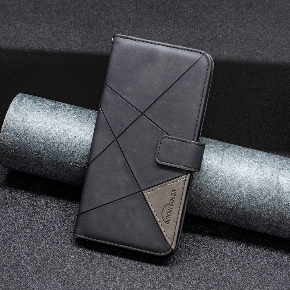 Apple iPhone 14 Pro 6.1'' Geometric Texture Wallet Stand Leather Phone Book Case Cover, Black
