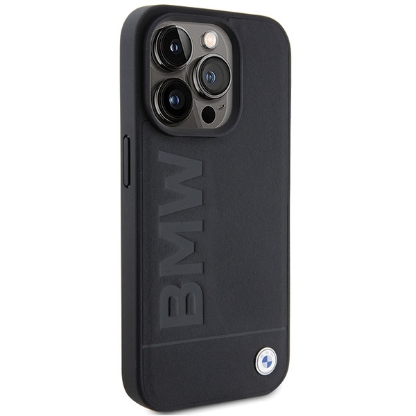 BMW iPhone 15 Pro Case Leather Hot Stamp, Black