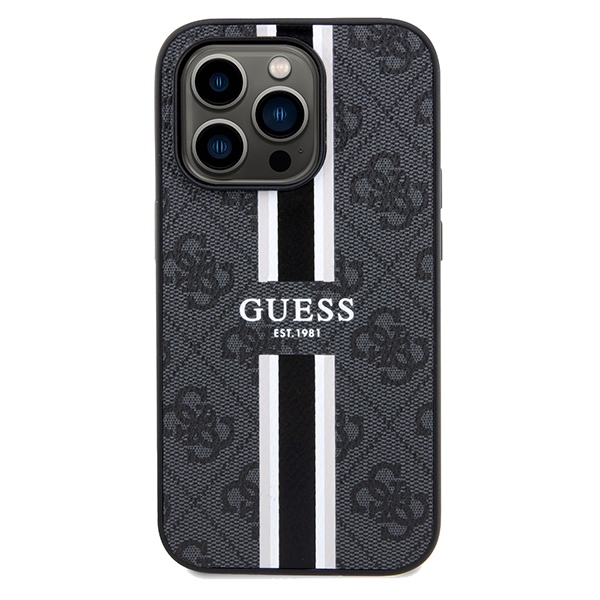 Guess iPhone 15 Pro Max Case 4G Printed Stripes MagSafe, Black