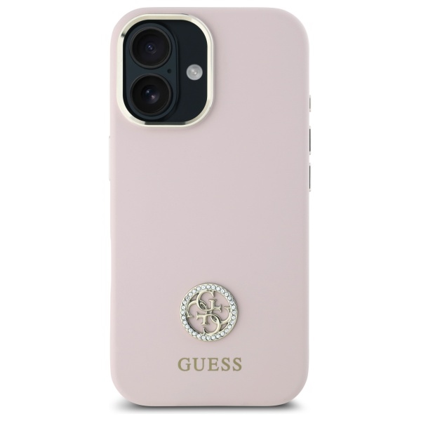 Guess iPhone 16 Case Silicone Logo Strass 4G, Light Pink