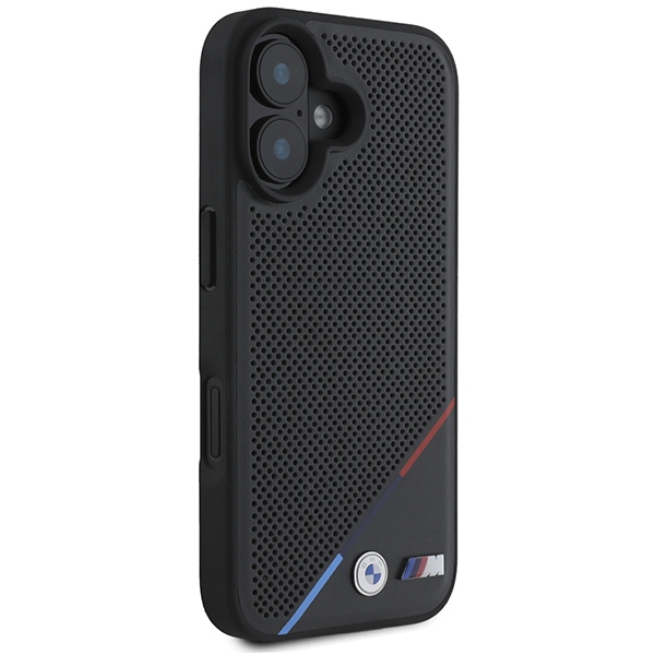 BMW iPhone 16 Plus Case M Perforated Tricolor Line MagSafe, Black