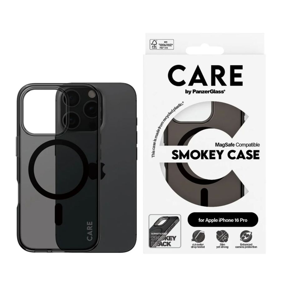 CARE by PanzerGlass Flagship Case for iPhone 16 Pro, MagSafe, Smokey Black