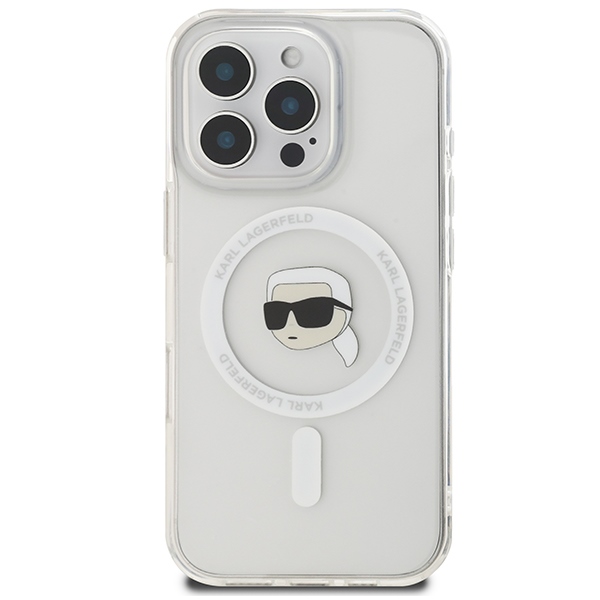 Apple iPhone 16 Pro 6.3'' Karl Lagerfeld IML Metal Karl Head MagSafe Cover Case, White