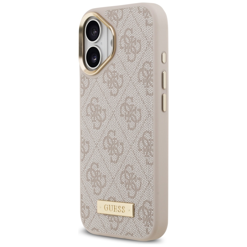Stand out and stay protected with the Guess 4G Logo Plate MagSafe Case for iPhone 17 in pink—a premium phone case for iPhone 17 that blends fashion and function. Its ultra-slim yet durable design defends against daily drops and scratches, while raised edges help guard your screen and camera. Built-in MagSafe magnets snap seamlessly to chargers and accessories for fast, hassle-free use, and precise cutouts keep every button and port effortless to access. Elevate your style and protection—choose the iconic Guess 4G case for your iPhone 17 today.