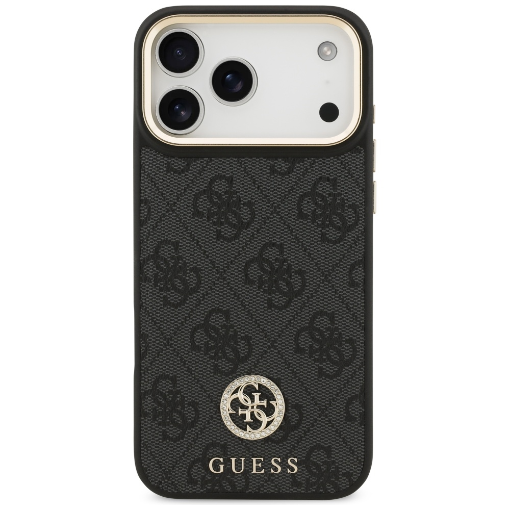 Guess 4G Srtass Logo & Big Strap Metal Buttons MagSafe Phone Case Cover iPhone 17 Pro Max - Black