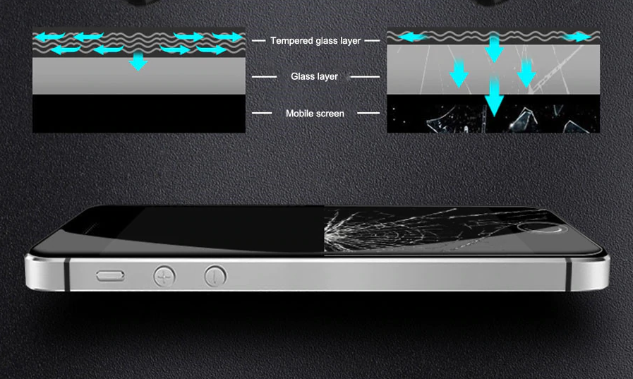 Tempered Glass Screen Protector for Apple iPhone 5 / 5s / SE, 0.3mm 9H 2.5D