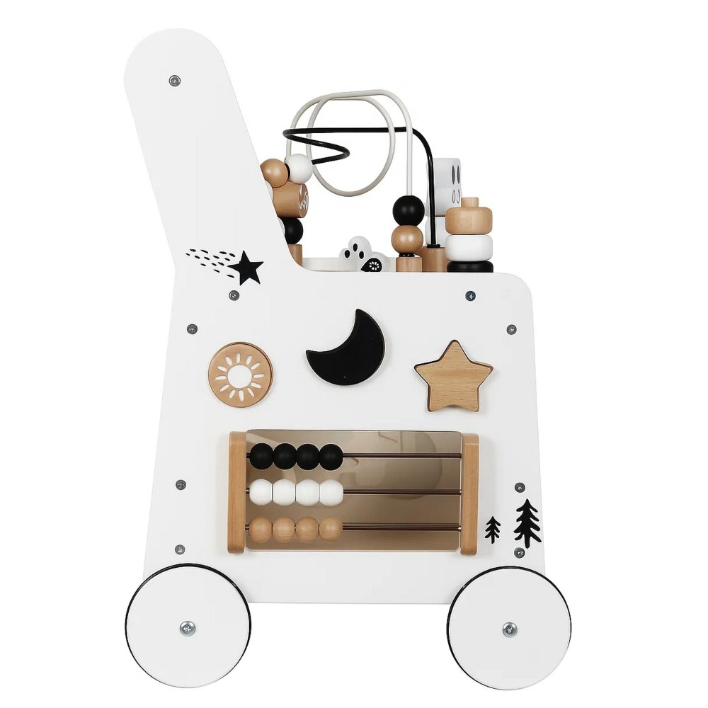 This educational wooden walker is the perfect companion for your little one as they transition from crawling to walking. Its sturdy, stable design provides the support they need to explore their world on their own two feet, while the engaging activities offer endless hours of developmental fun.