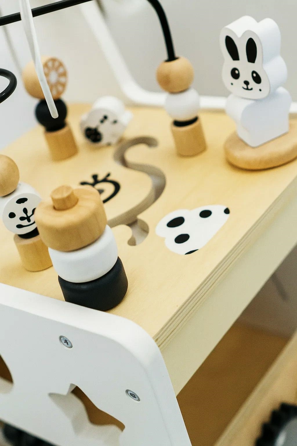 Support your toddler's first steps with our 5-in-1 Wooden Baby Walker. This activity center helps build confidence, balance, and essential motor skills.