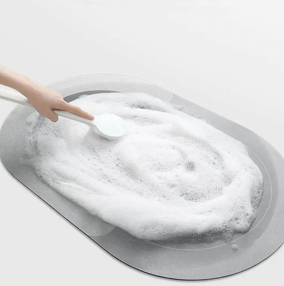 An extremely practical, rectangular bathroom rug. Made of rubber and polyester, it absorbs water very quickly and is easy to clean. The anti-slip structure prevents it from moving on a slippery floor and protects it from falling.