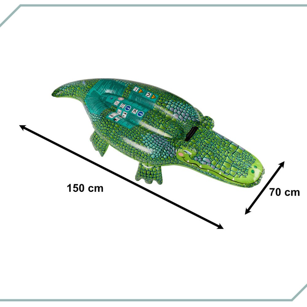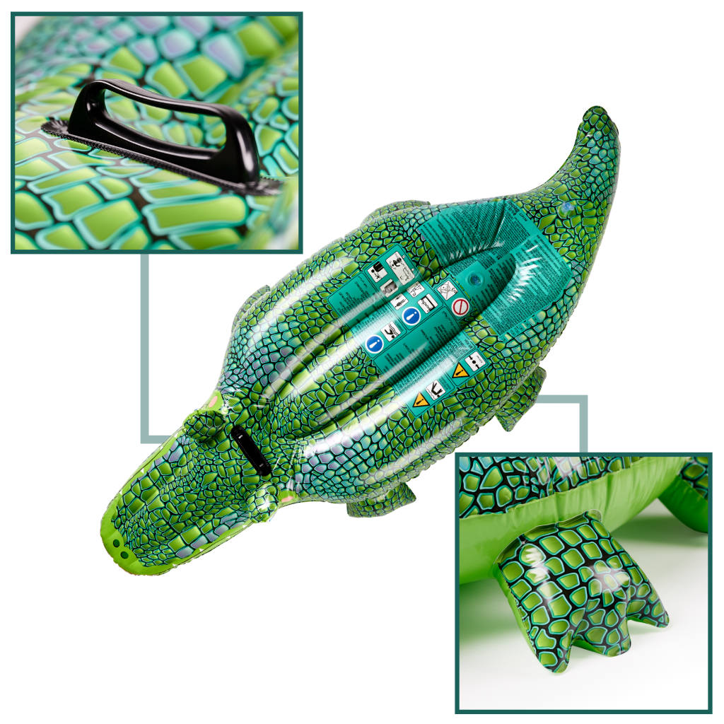 An inflatable children's mattress for swimming. The crocodile shape will attract children's attention and encourage water play. It has a handle, which makes it easy to sit on the crocodile. The total length of the inflatable is up to 150 centimetres.