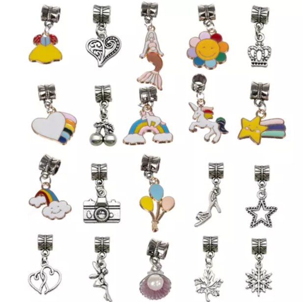 - LARGE SET - A set of 70 elements will allow your child to create fabulously colorful bracelets in various shapes and with various motifs. To the set 4 bracelets have been attached on which you put beads and pendants .