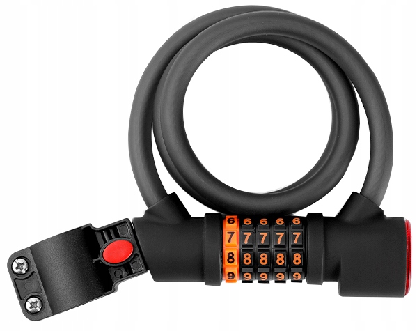 A unique feature is the additional small light that illuminates the combination dials, making it effortless to unlock your bike even in complete darkness. The lock comes with a convenient mounting bracket for easy storage under your saddle.