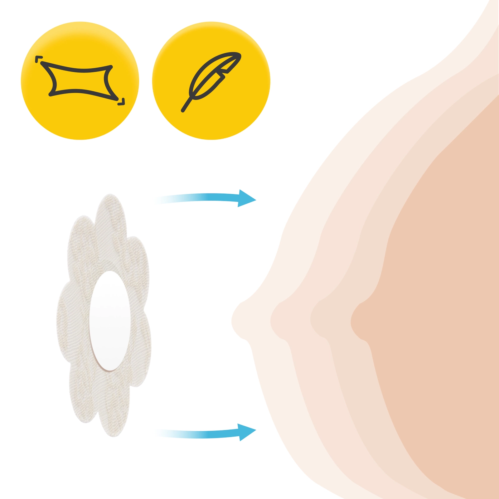 The 4Fizjo cotton nipple covers in a flower shape are a comfortable and discreet solution for women looking for an alternative to traditional bras. They provide comfort and protect sensitive skin from chafing, allowing you to wear your favorite outfits freely.