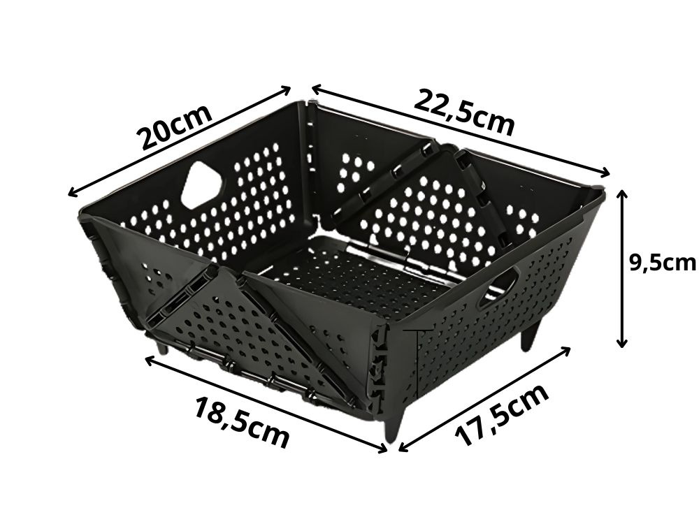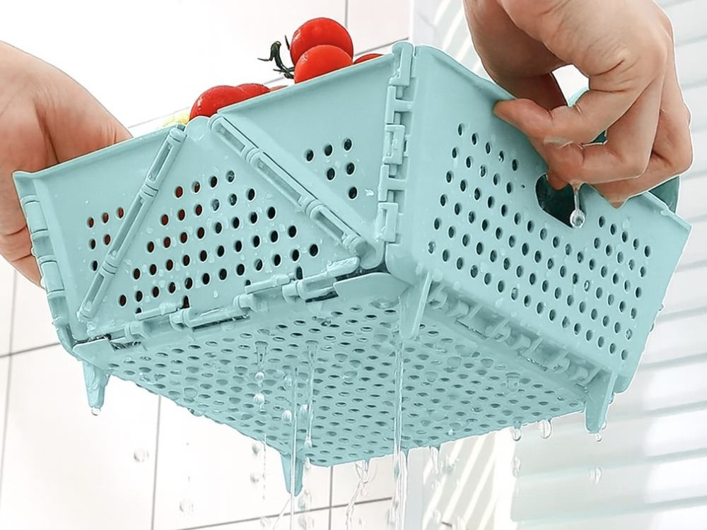 A multifunctional collapsible basket that also serves as a colander is a practical helper in any kitchen. It is suitable for washing, storing, and serving food.