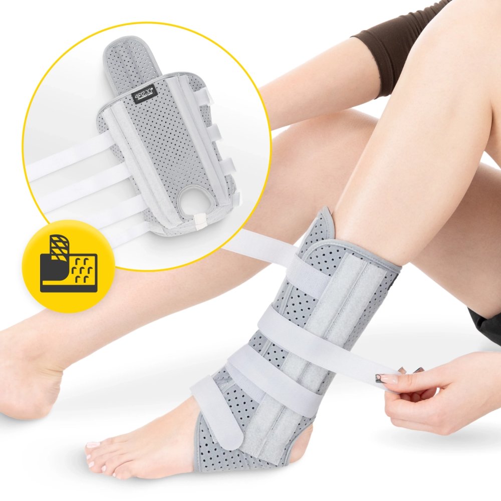 The 4Fizjo ankle brace with lateral reinforcement is designed to provide maximum stabilization and support for the ankle joint. It is an essential aid for post-injury recovery, rehabilitation, and daily protection against sprains.