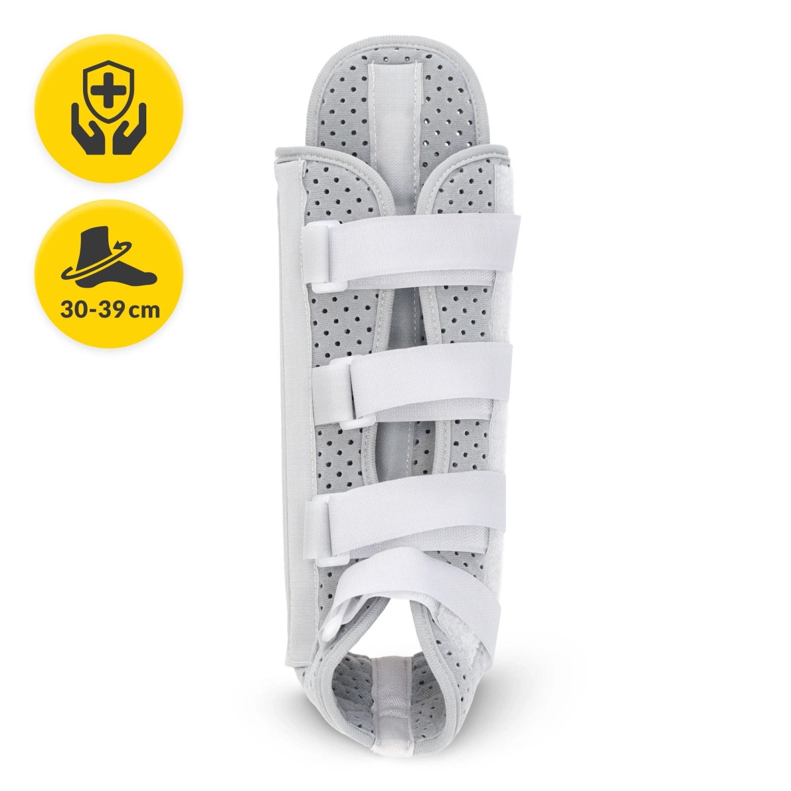 This stabilizer is ideal for athletes, elderly individuals, and anyone recovering from ankle sprains, dislocations, or Achilles tendon weakness. Its contoured design with a dedicated heel opening ensures a comfortable fit that prevents rolling, while the lateral splints protect against sudden, uncontrolled rotations without restricting normal walking movements.
