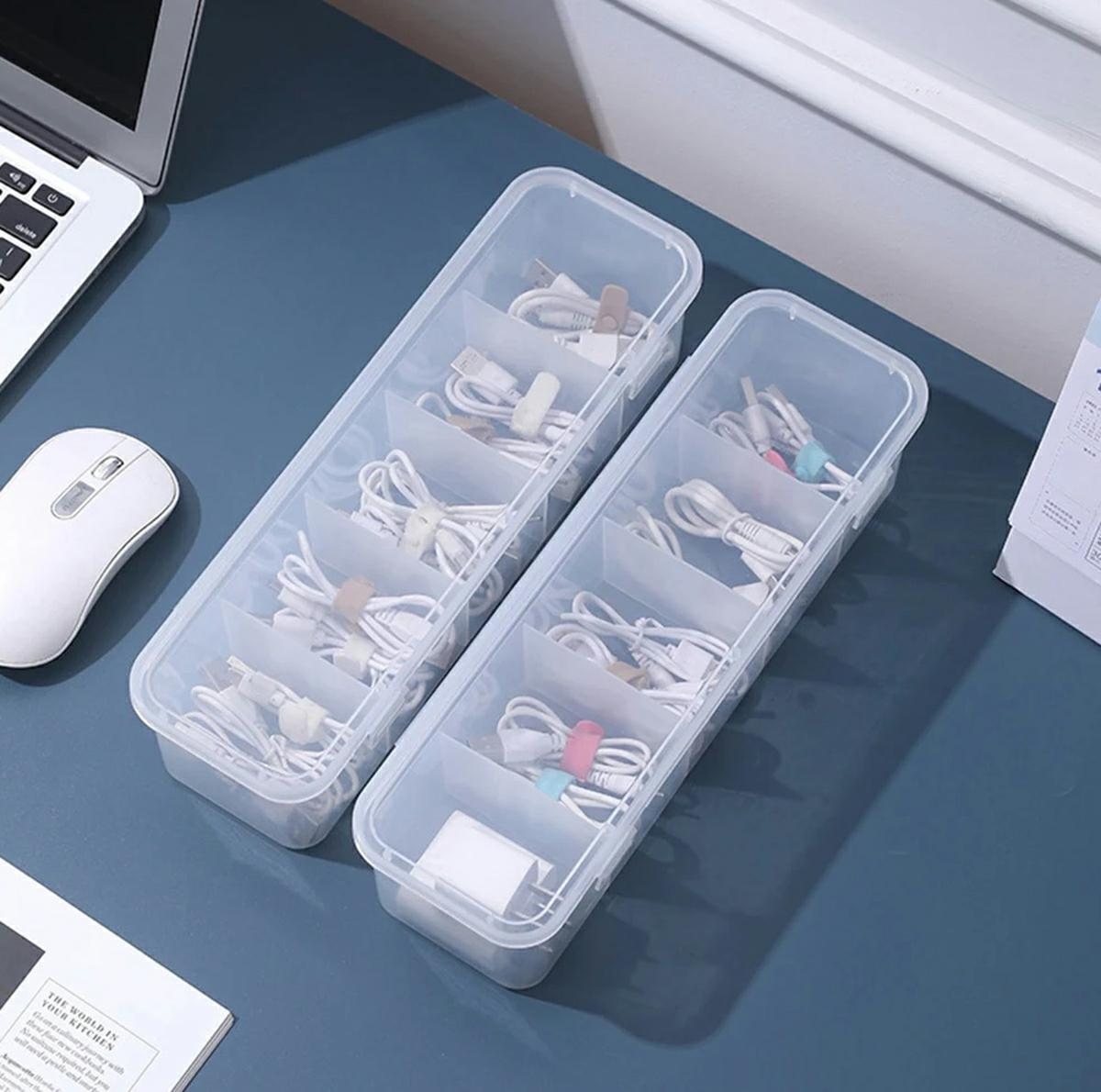 Cable Organizer Box with 5 Compartments for Wires, Transparent