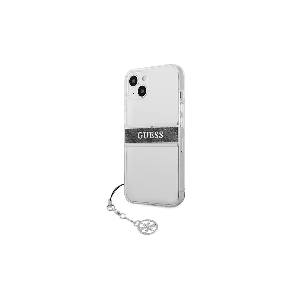 Guess GUHCP13LKB4GGR iPhone 13 Pro / 13 6,1\" Transparent hardcase 4G Grey Strap Charm