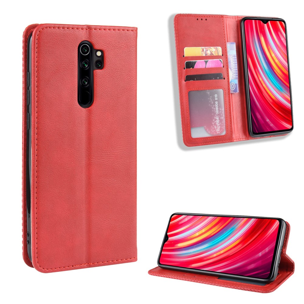 Xiaomi Redmi Note 8 Pro Vintage Style Magnetic Leather Wallet Case Cover, Red