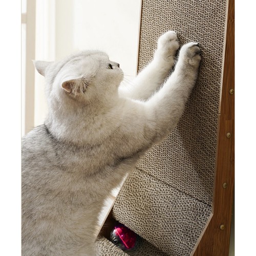 Cardboard cat scratchers are a great way to give your cat a place to scratch and play. They are made of durable cardboard material and mdf. The corner cat scratcher has been designed for easy and quick assembly. An additional element that will make your cat happy is the catnip included in the set. Catnip is known to be attractive to cats and can provide them with extra stimulation and fun. The ball included in the set is a great addition that will encourage your cat to be even more active and move.