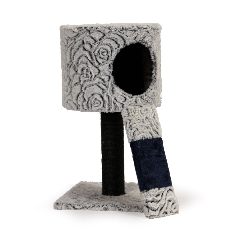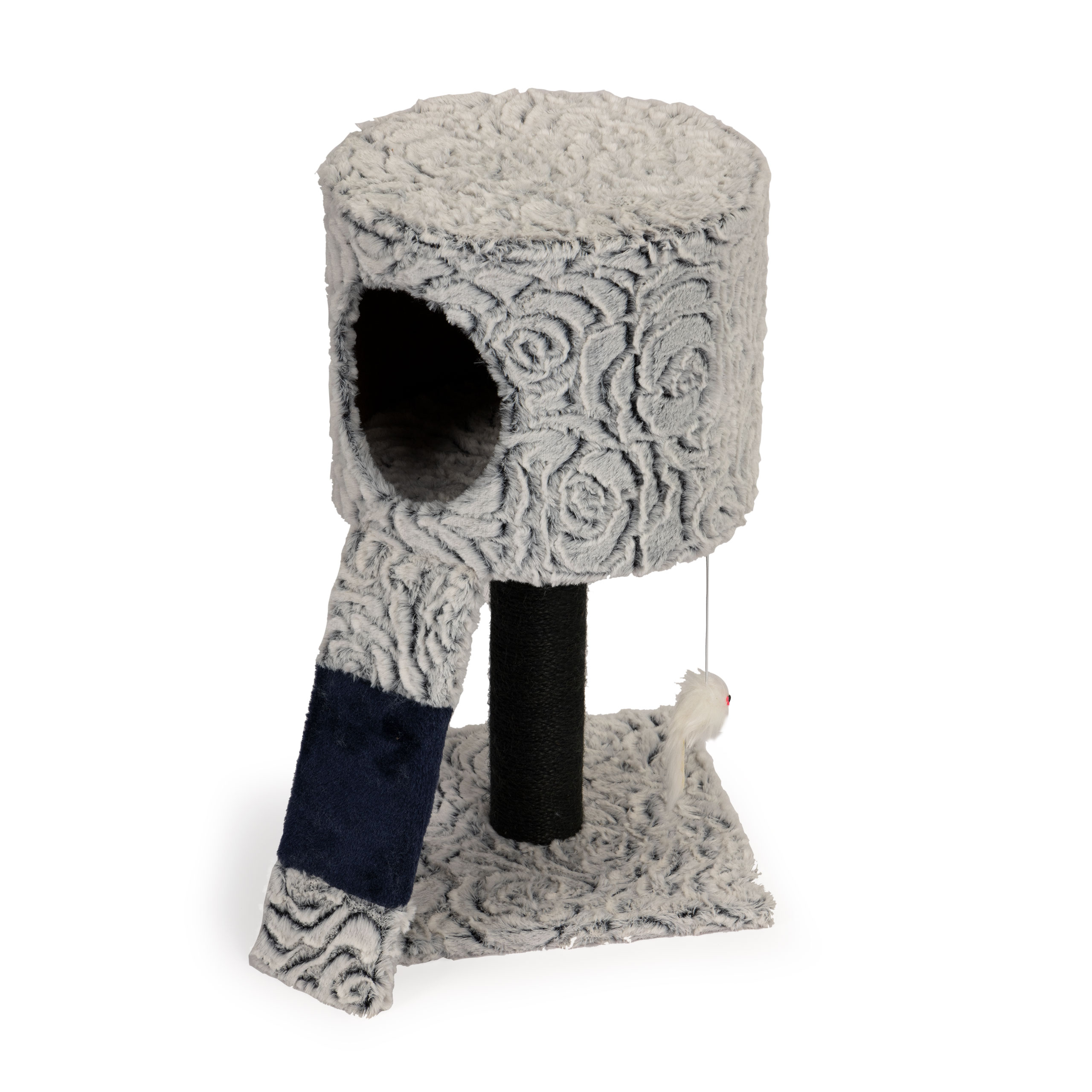 The base is made from durable MDF, while the vertical post is wrapped in natural 4 mm sisal rope, perfect for sharpening claws. Soft plush covers all resting areas, ensuring maximum comfort, and the stable construction keeps your cat safe during play.