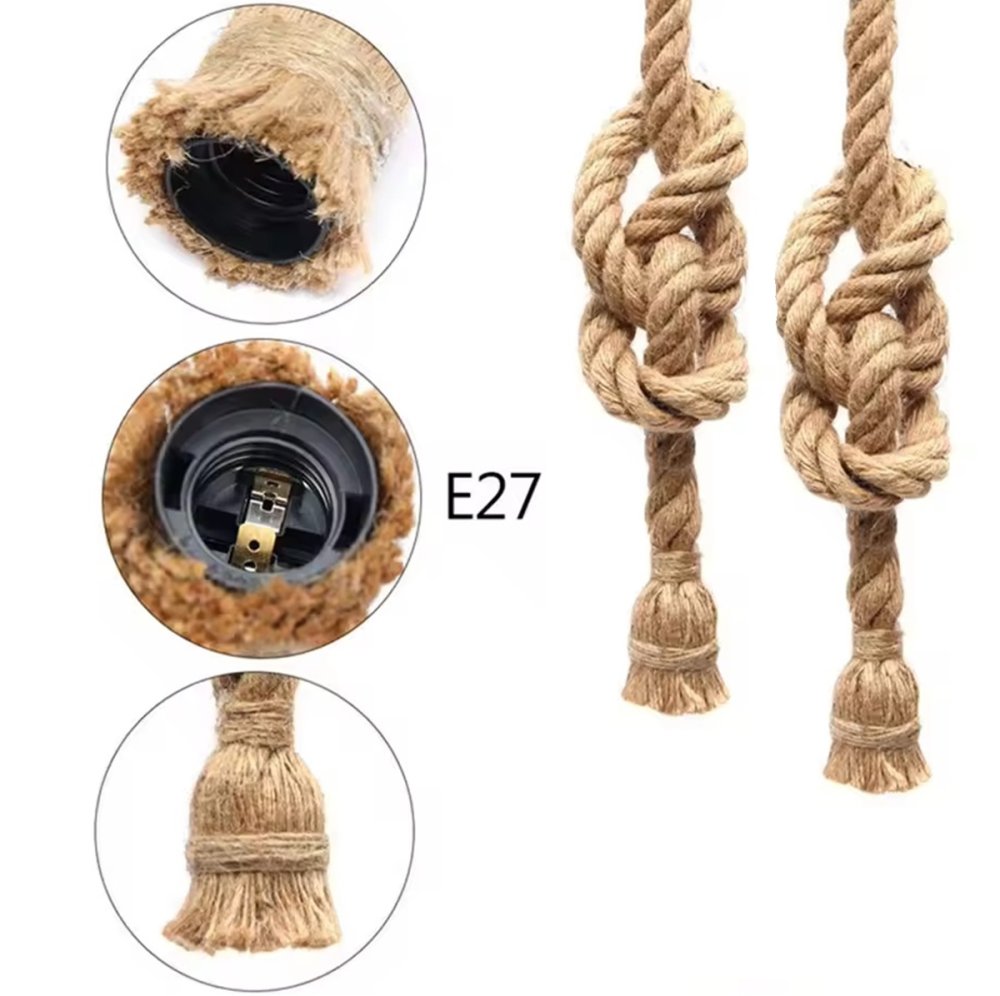 Stylish ceiling lamp featuring two flexible arms wrapped in real jute rope. Perfect for loft or vintage-inspired interiors, this lamp adds a unique decorative touch to any room. Made from high-quality powder-coated steel and equipped with two standard E27 bulb sockets.