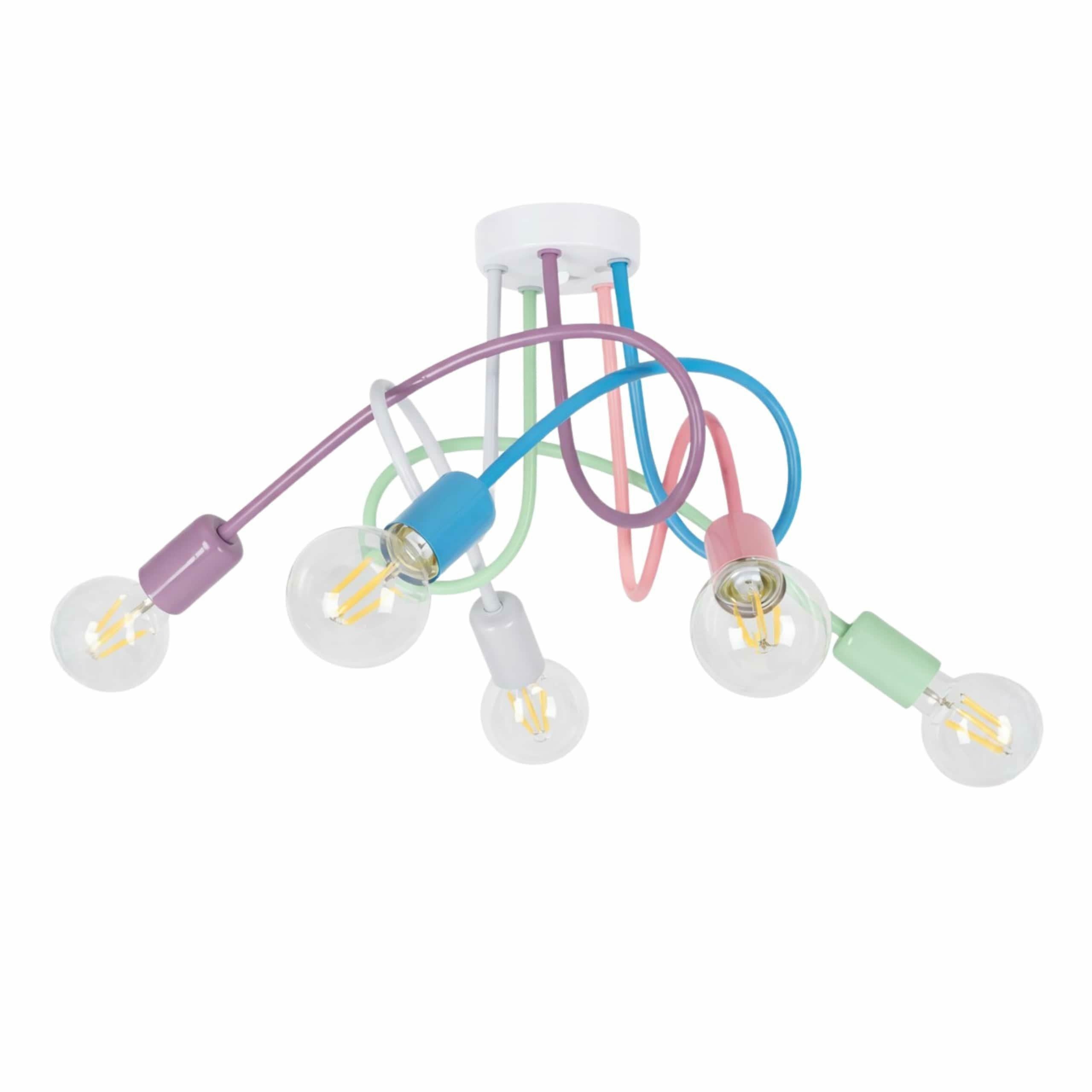 Elevate your space with our modern 5-light industrial chandelier. Featuring a playful array of pastel shades, this pendant light adds a chic, designer touch to your living room, kitchen, or dining area.