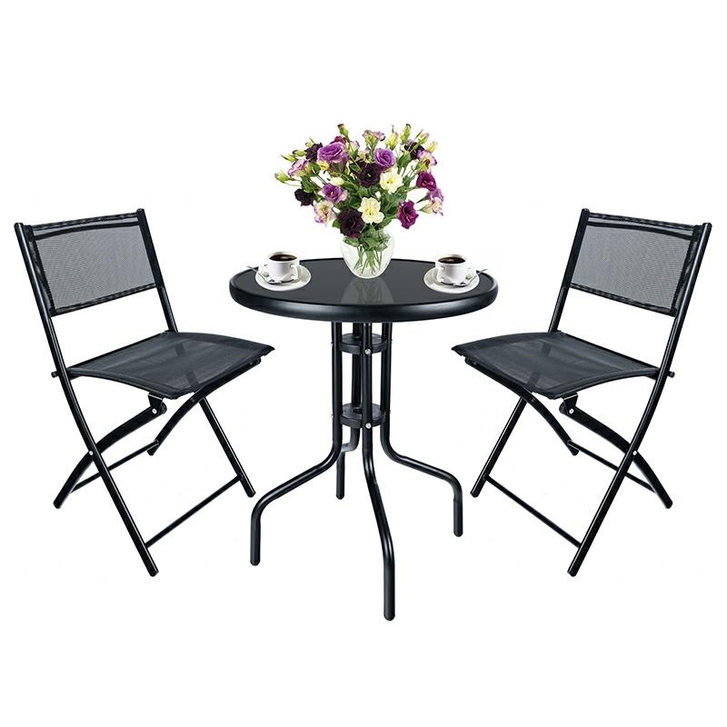 Garden furniture set consisting of 2 chairs and a table. Weather resistant with modern design will be great decoration for any terrace/garden/balcony.
