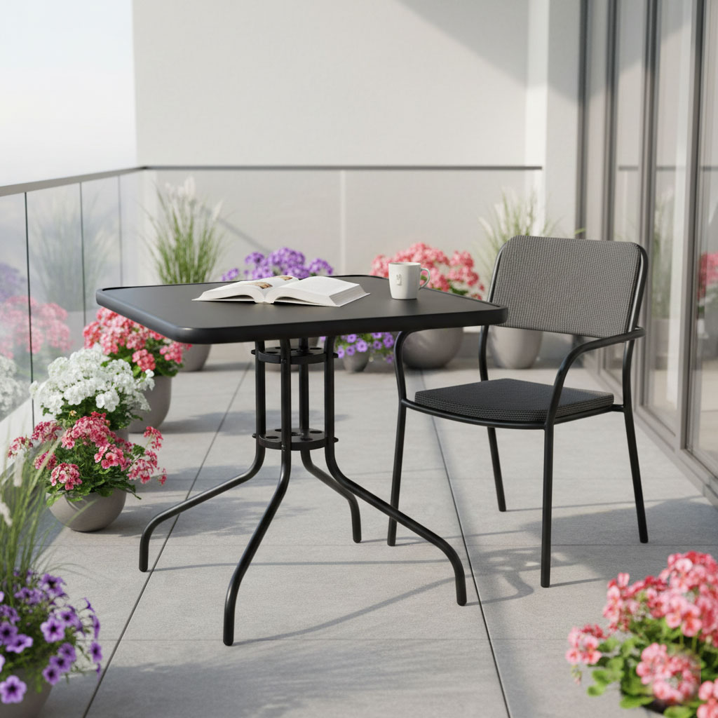 Upgrade your patio or garden with this stylish 80x80 cm square table. Featuring a durable tempered glass top and a central umbrella hole, it's the perfect centerpiece for outdoor dining and relaxation.