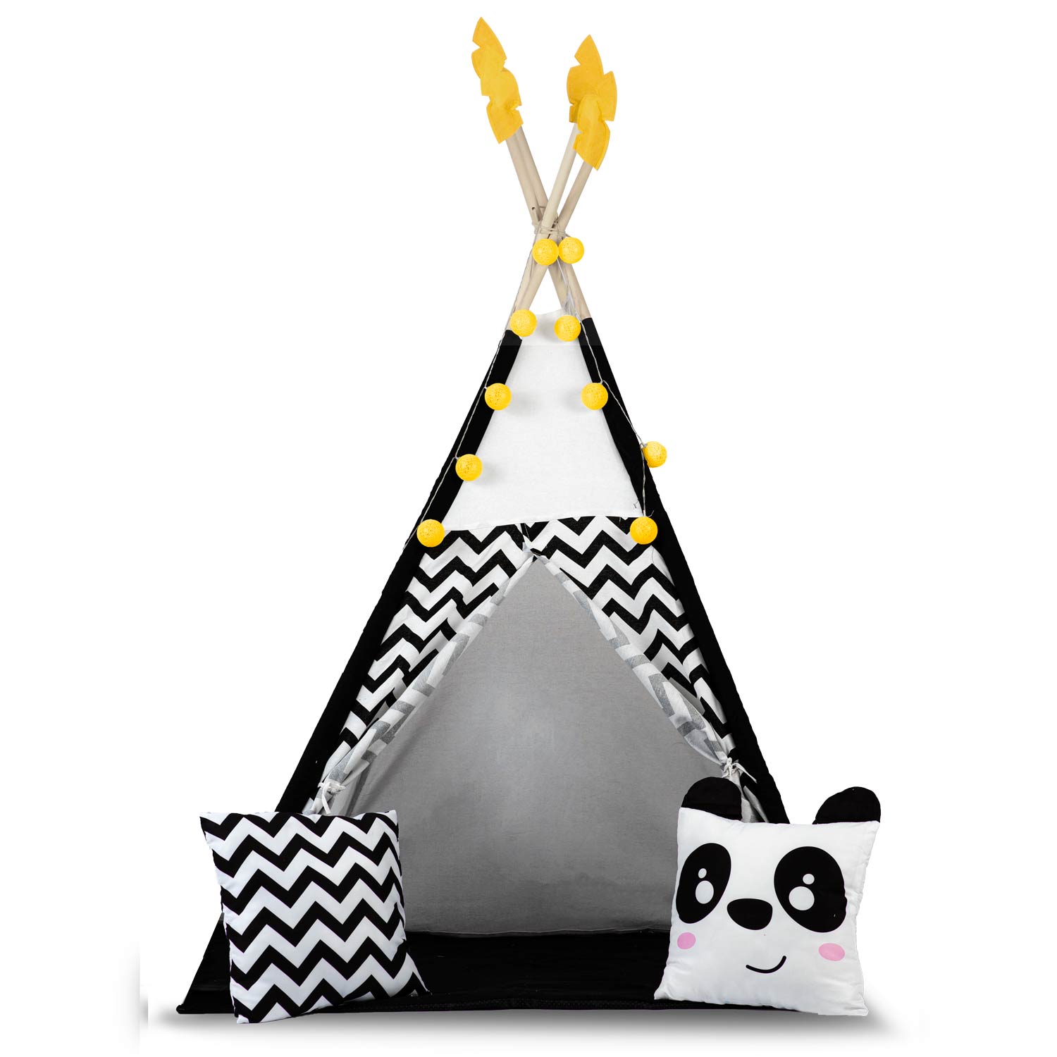 Nukido Baby Tipi Tent Wigwam with Garland and Lights, White-Black